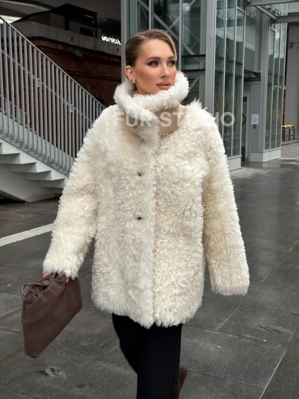 Белая шубка из тиградо. Модель предлагается в размерах от 42 до 48. Оптимальная длина моделей 70-75 см подчеркивает линии вашей фигуры. Эта дубленка станет неотъемлемой частью гардероба для тех, кто предпочитает роскошь и утонченность натуральной кожи.