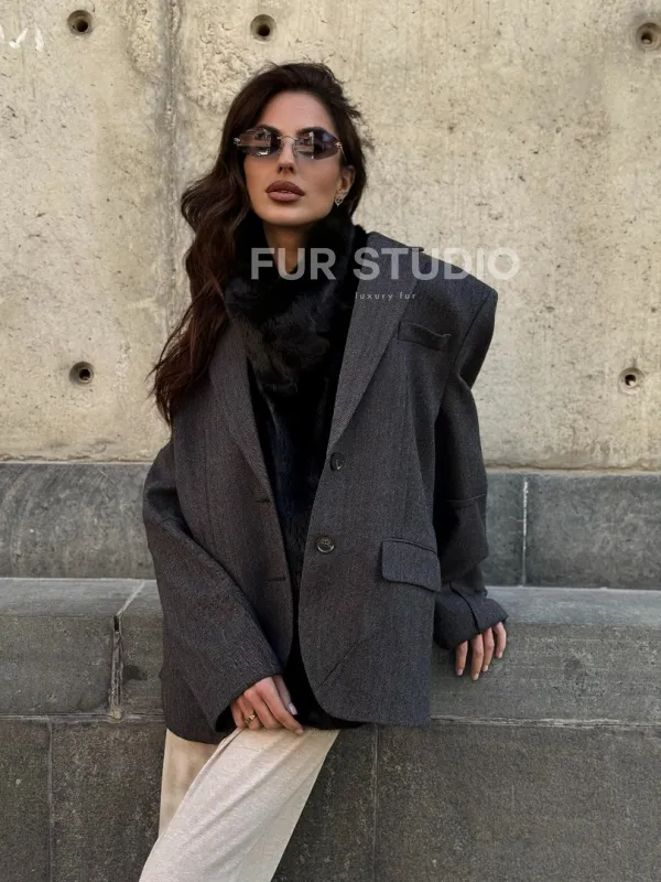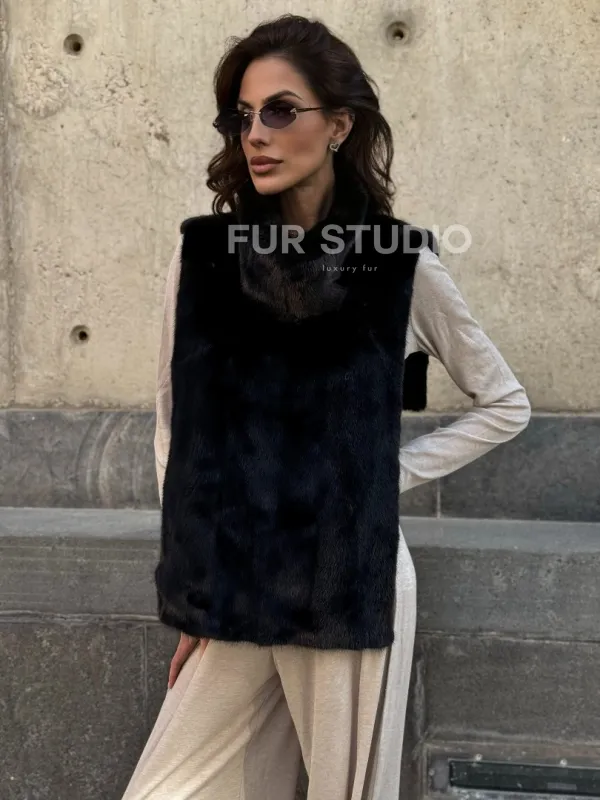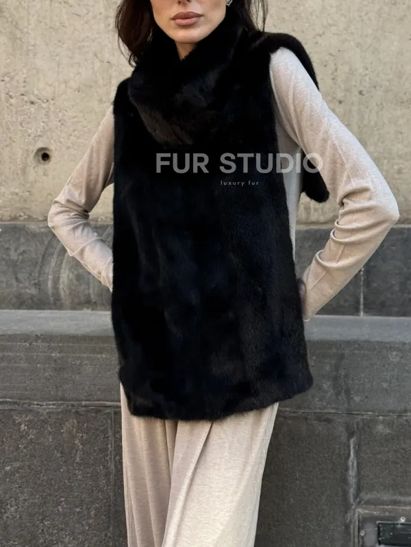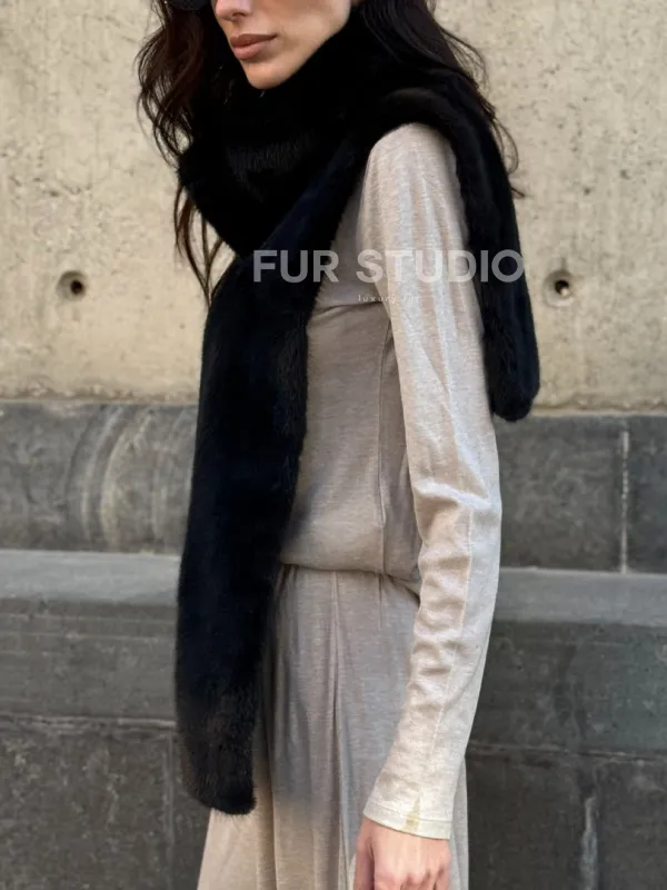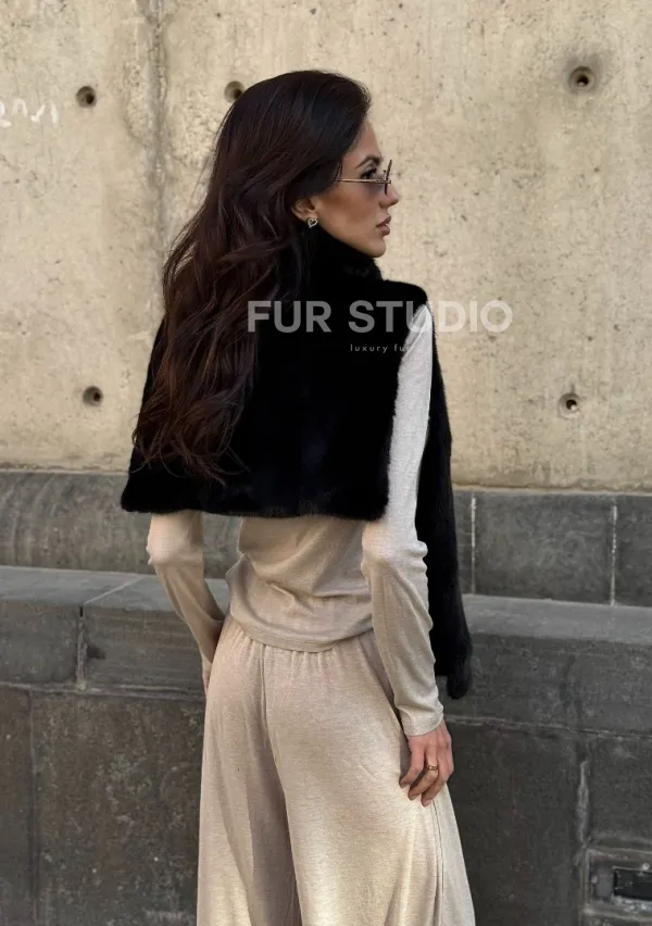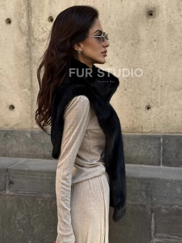 Черная норковая манишка 102213