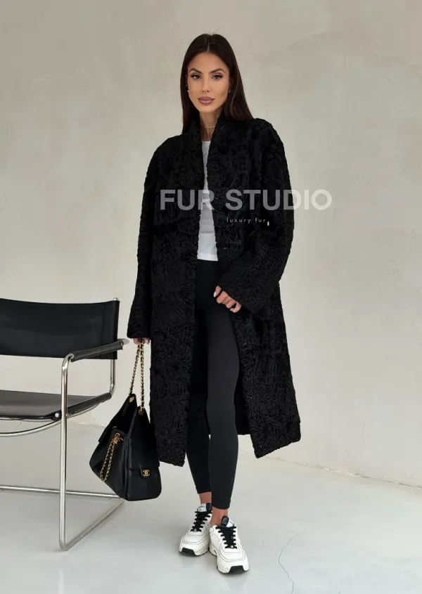 Черная шуба из каракуля доступна для покупки в нашем шоуруме Furs Studio в . У нас так же есть доставка во все города России. Добавьте немного роскоши в свой гардероб с этой шубой, которая будет служить вам многие годы.