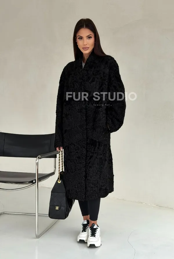 Черная шуба из каракуля 102699