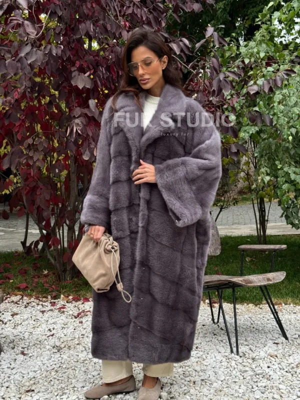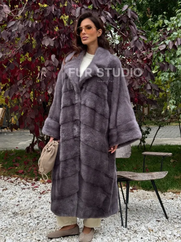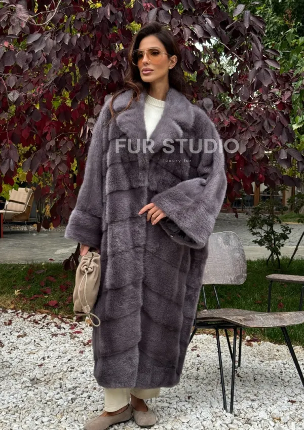 Мех данной шубы аукционная норка , цвет серый. Предлагается в размерах от oversize (42 до 68). Длина модели 120-125 см, что выгодно подчеркивает фигуру девушек. Эта модель идеально подойдет для девушек и женщин, предпочитающих роскошные натуральные меха.
