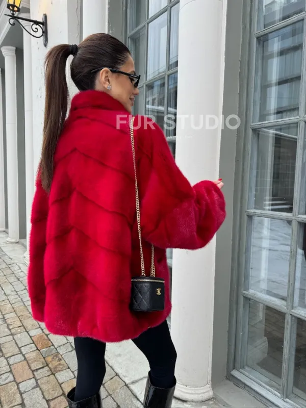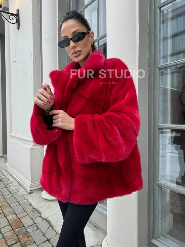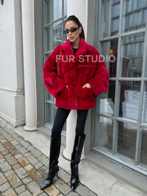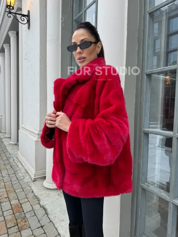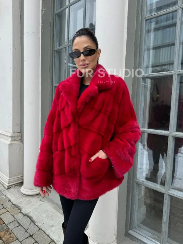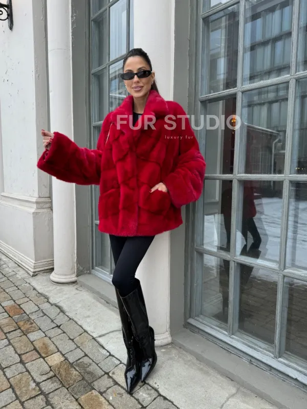 Полушубок норковый в красом оттенке отличный выбор для женщин с утонченным вкусом. Необычный цвет выгодно подчеркнет цвет волос и глаз владелицы. Прямой крой скроет недостатки фигуры и зрительно вытянет силуэт. Оригинальный воротник сделает акцент на изяществе шеи. Широкие манжеты подчеркнут изящество кистей. Удобные карманы позаботятся о тепле ручек.