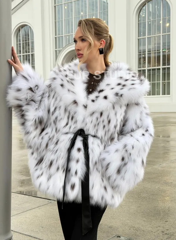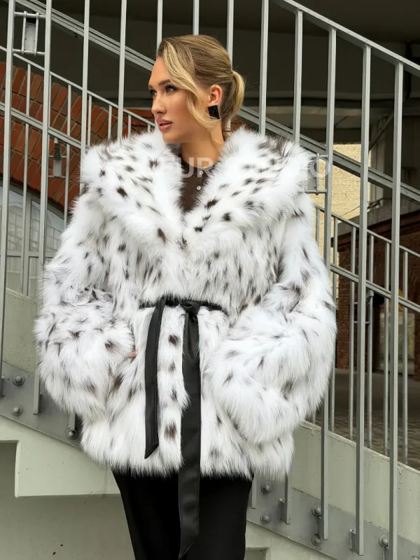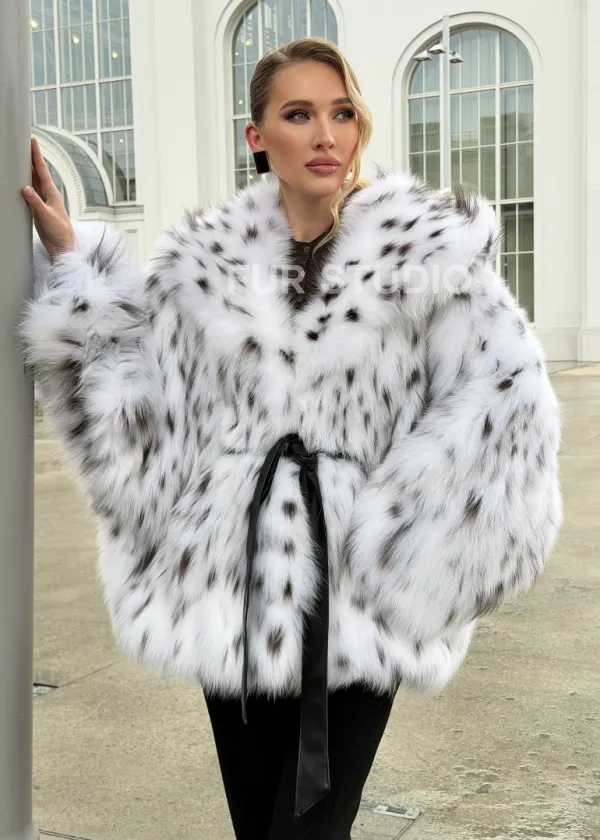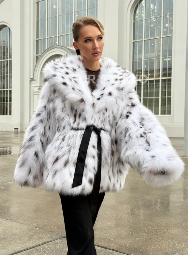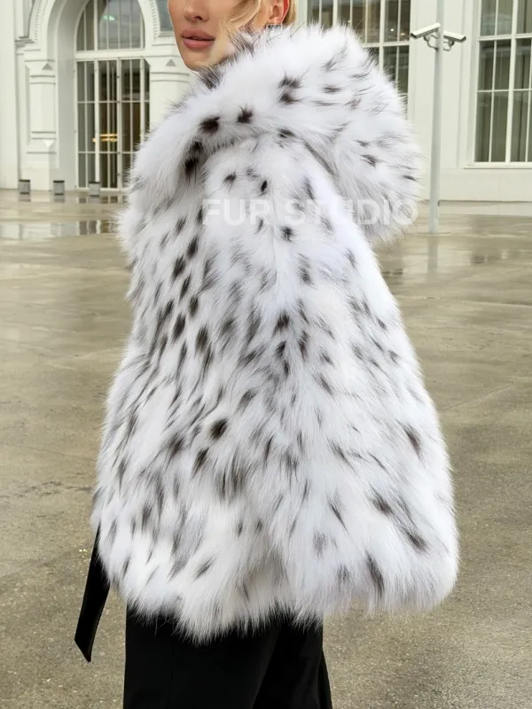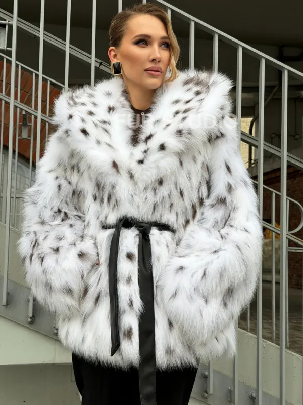 Шуба из лисьего меха под рысь с капюшоном 102680