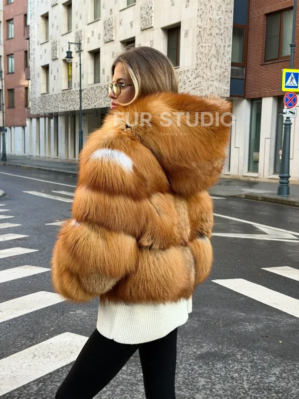 Шуба из лисы с капюшоном 102534