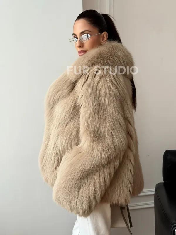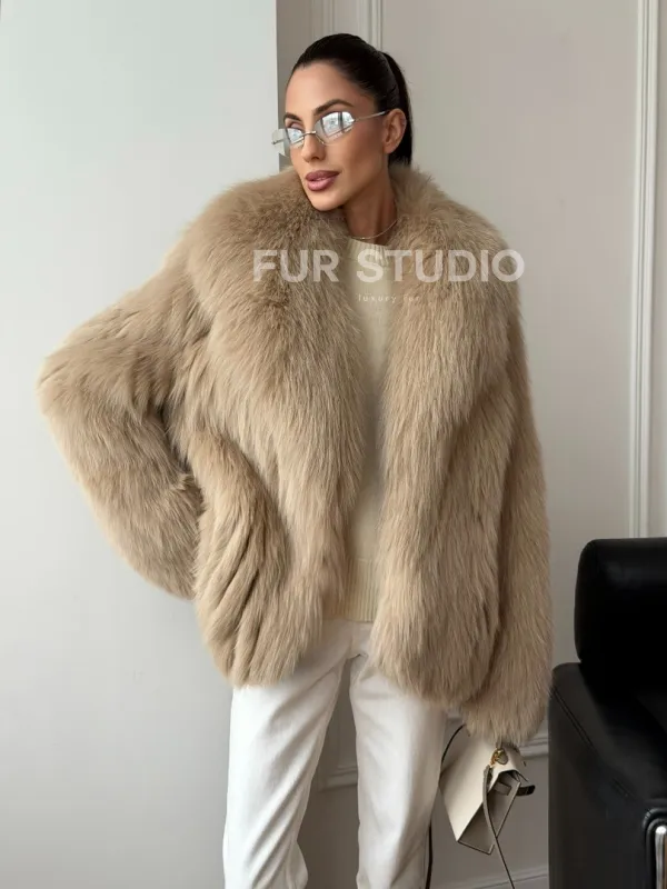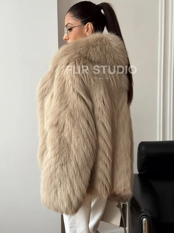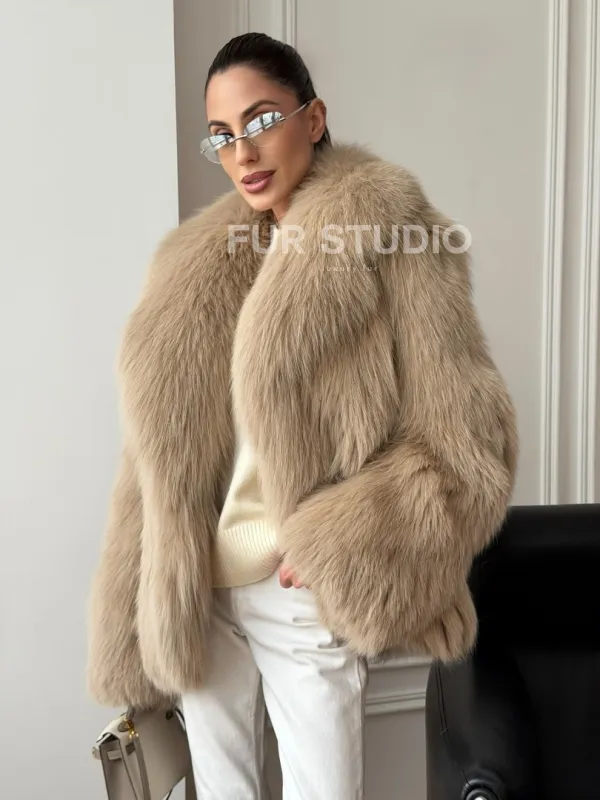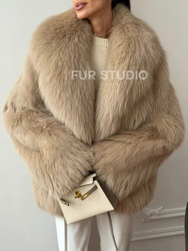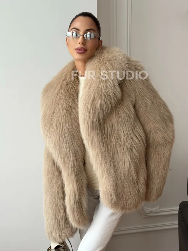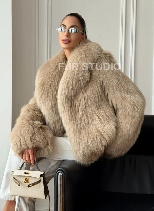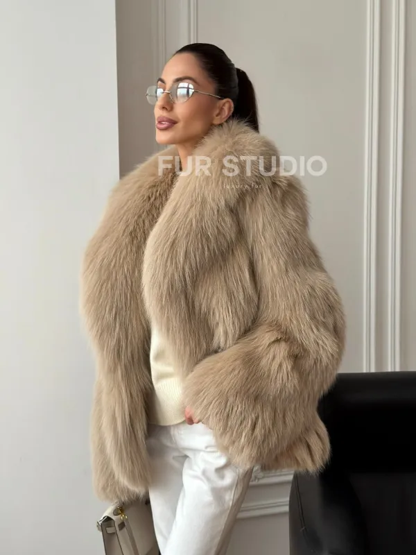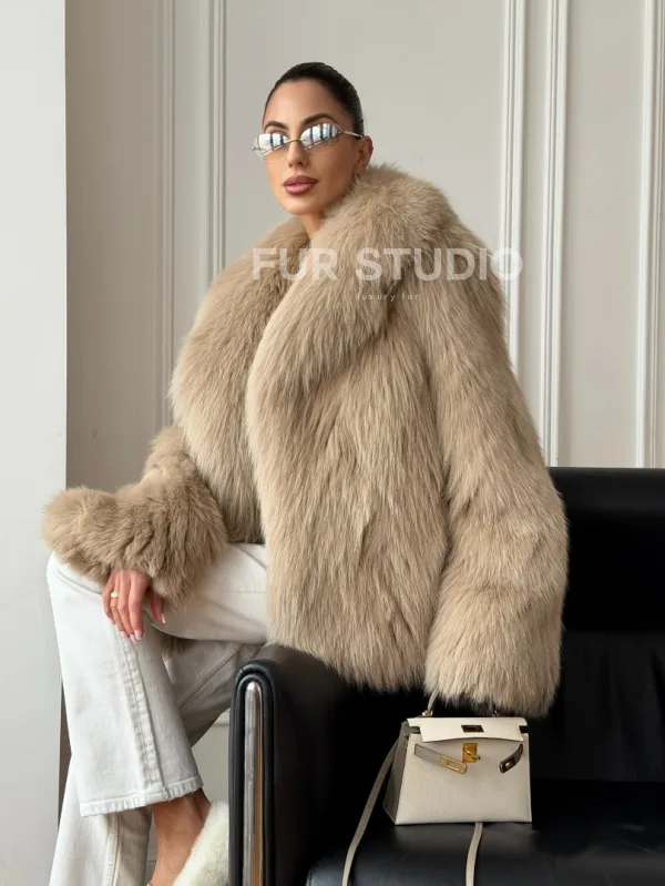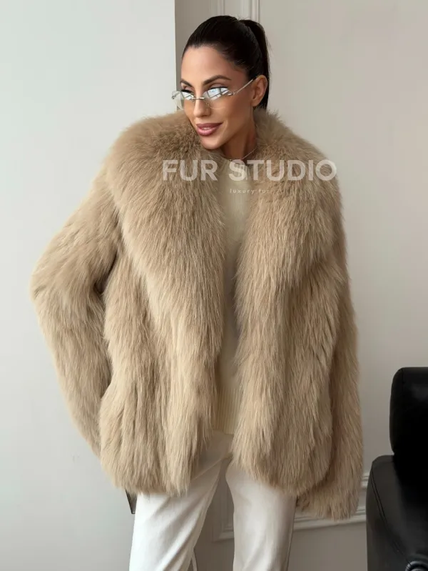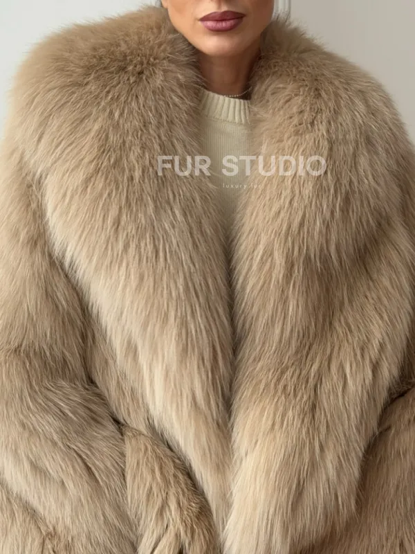 Мех данной шубы лиса, цвет бежевый. Предлагается в размерах от 40 до 50. Длина модели 65-70 см, что выгодно подчеркивает фигуру девушек. Эта модель идеально подойдет для девушек и женщин, предпочитающих роскошные натуральные меха.